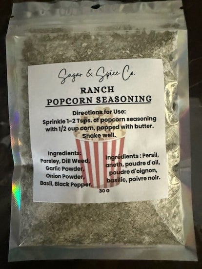 Directions for Use: Sprinkle 1-2 tsps of popcorn seasoning with 1/2 cup corn, popped with butter. Shake well.