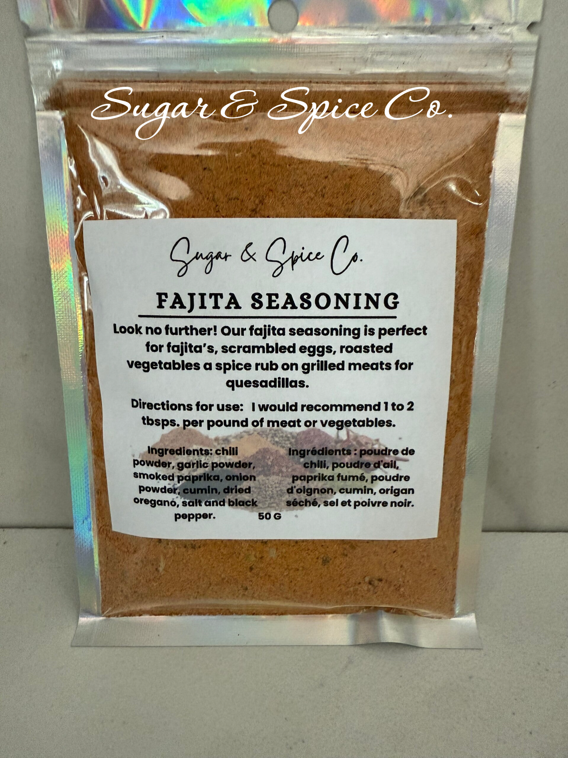 Look no further! Our fajita seasoning is perfect for fajita's, scrambled eggs, roasted vegetables or a spice rub on grilled meats for quesadillas.